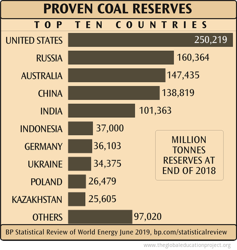 Figure 3 – Distribution of the world’s largest coal reserves (Source: The Global Education Project