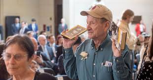 Me with other Holocaust survivors at the Capitol during a Congressional Gold Medal ceremony honoring Benjamin Ferencz (Source: Times Argus)